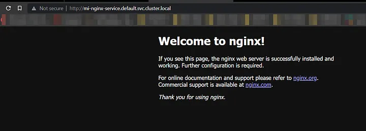 Save this file as mi-nginx-svc.yaml and run kubectl apply -f mi-nginx-svc.yaml, check your service with kubectl get services. Notice that network 10.0.0.0/8 is unreachable outside the cluster.