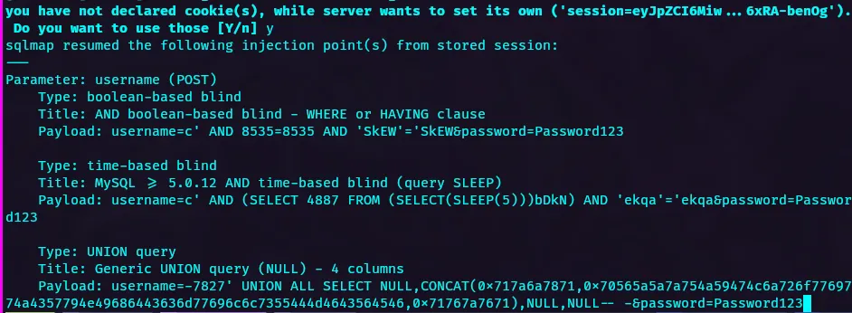 sqlmap -u "http://10.201.1.150:8000/login" \